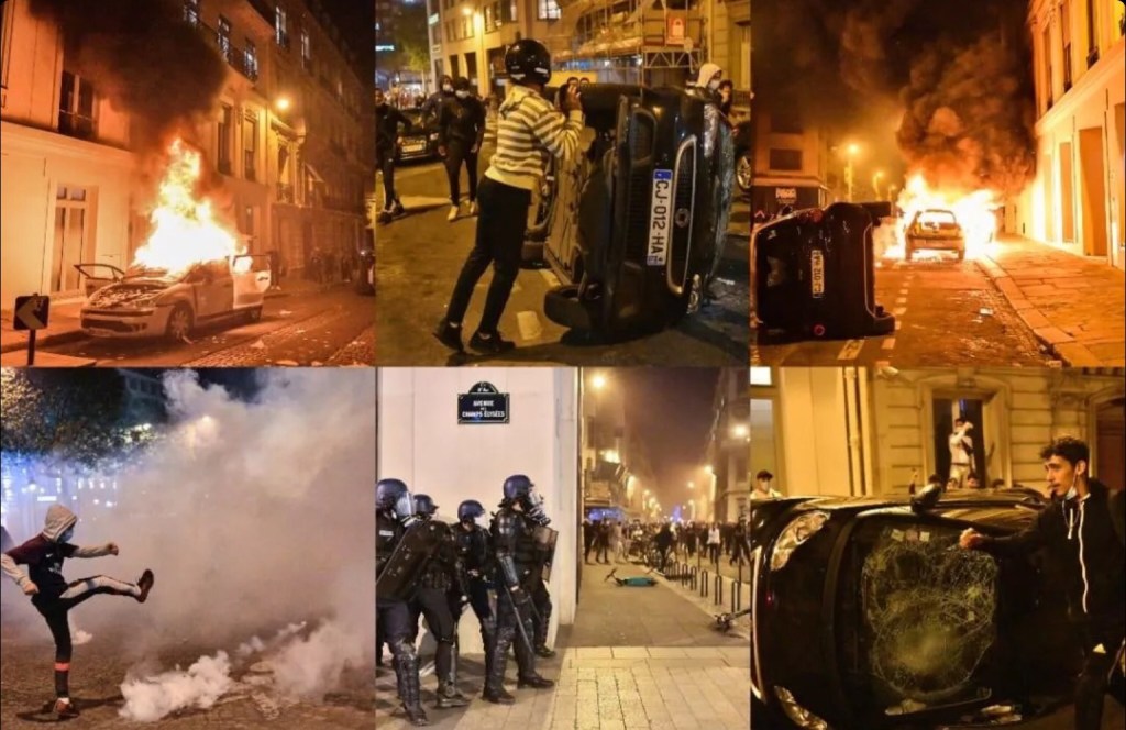 Hundreds of people marched on police headquarters on Sunday night. Vehicles were set on fire and protesters shouted “We won’t back down”.